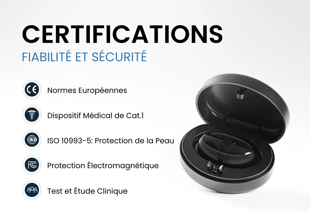 Nos produits sont sûrs pour la plupart des utilisateurs, mais ils ne doivent pas être utilisés par les personnes souffrant de troubles neurologiques graves, d’épilepsie ou portant un dispositif médical implanté (pacemaker, défibrillateur, etc.). En cas de doute, consulte un professionnel de santé.